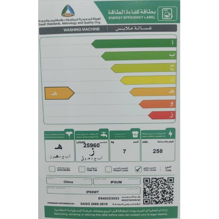 غسالة ملابس تحميل علوي إبسوم 7 كيلو – رمادي غامق | IP80WTXS | أداء قوي، تصميم أنيق، كفاءة عالية في الغسيل