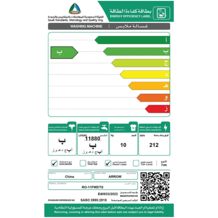 اختاري الذكاء والعملية في غسالتك الجديدة. غسالة ارو بسعة 10 كجم و18 برنامج غسيل تمنحك أداءً فائقًا في النظافة مع تجفيف فعال بنسبة 100%، وتصميم أنيق مزوّد بتقنيات ذكية تناسب احتياجاتك اليومية.