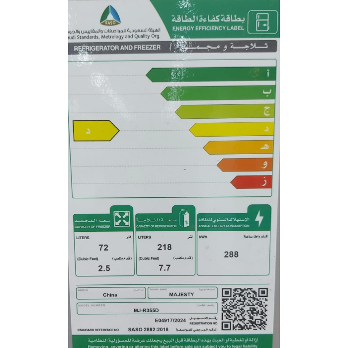 ✅ سعة الثلاجة: 7.7 قدم / 218 لتر