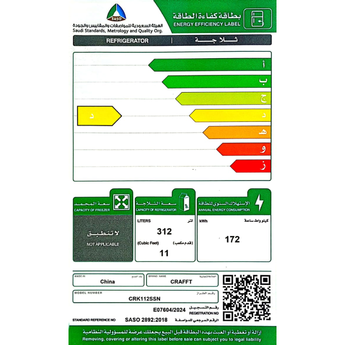 استمتع بتجربة تبريد لا مثيل لها مع ثلاجة باب واحد كرافت 11 قدم – فضي (CRK112SSN)، الحل الأمثل لاحتياجات التخزين اليومية في منزلك أو مكتبك. صُممت هذه الثلاجة لتجمع بين الكفاءة العالية، التصميم الأنيق بلونها الفضي العصري، وأداء التبريد المستقر الذي يحافظ على طازجية الطعام وبرودة المشروبات لأطول فترة ممكنة.