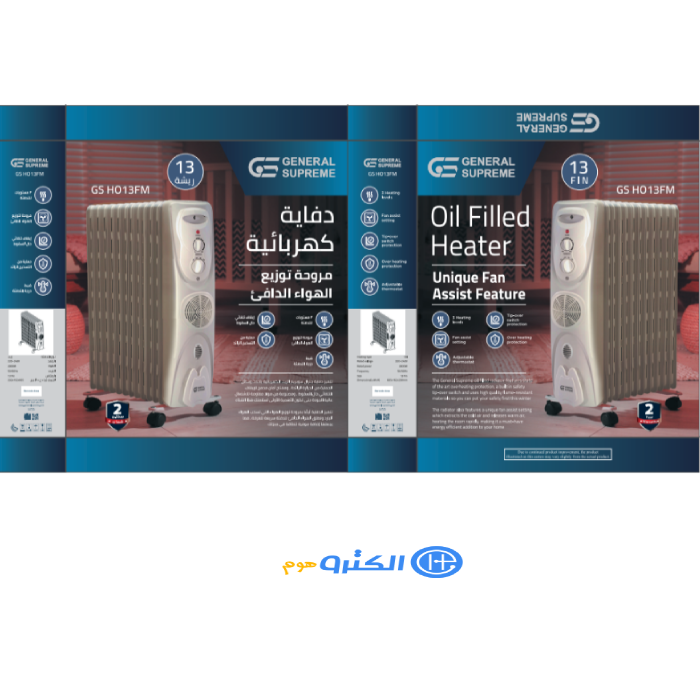 دفاية زيت جنرال سوبريم 13 ريشة – 2800 وات مع مروحة توزيع حراري GSHO13FM | أداء فائق، دفء فوري، تصميم أنيق