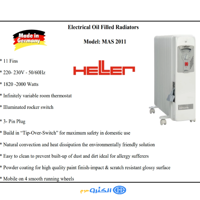 مميزات دفاية زيت هيلر 11 ريشة 2000 وات صناعة ألماني 2011 MAS :