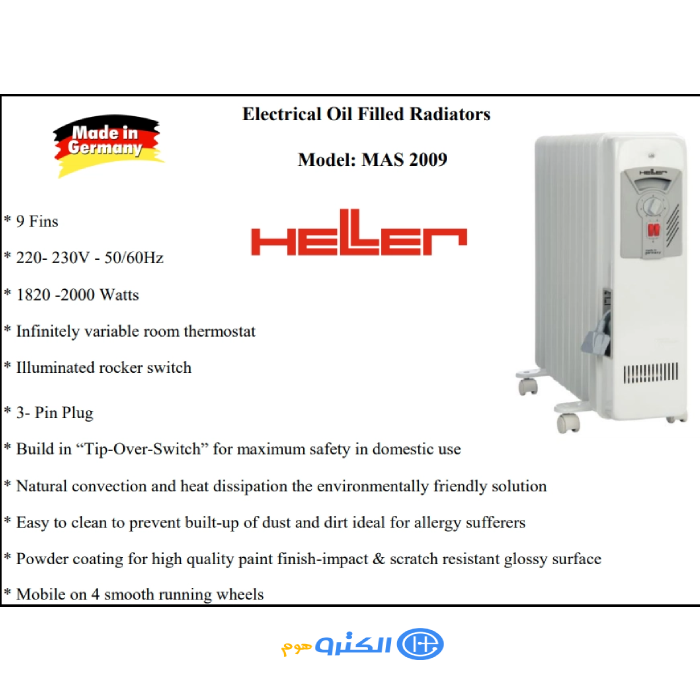مميزات دفاية زيت هيلر 9 ريشة 2000 وات صناعة ألماني 2009 MAS :