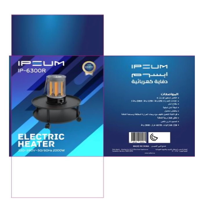 مميزات دفاية كهربائية ابسوم منقل مدورة دورين 6 شمعات 2000 وات IP-6300R :