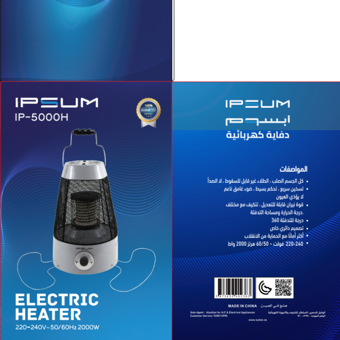 🛒 اطلب الآن دفاية IPSUM الدائرية 2000 وات (IP-5000H) واستمتع بالدفء الفوري بأناقة لا تُضاهى!
