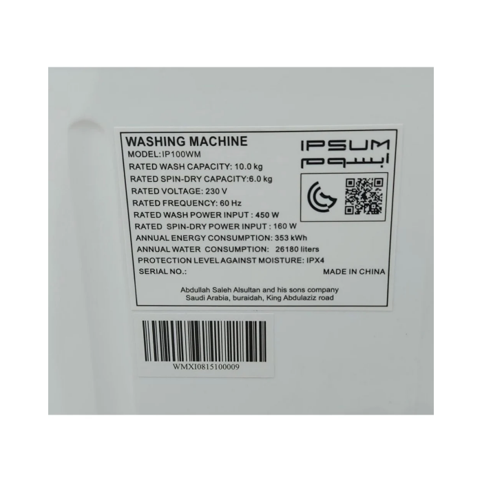 غسالة حوضين 10 كيلو، غسالة ابسوم أبيض، غسالة IP100WM، غسالة ملابس حوضين، غسالة اقتصادية، أفضل غسالة حوضين في السعودية، غسالة منزلية قوية، غسالة ابسوم 10 كجم