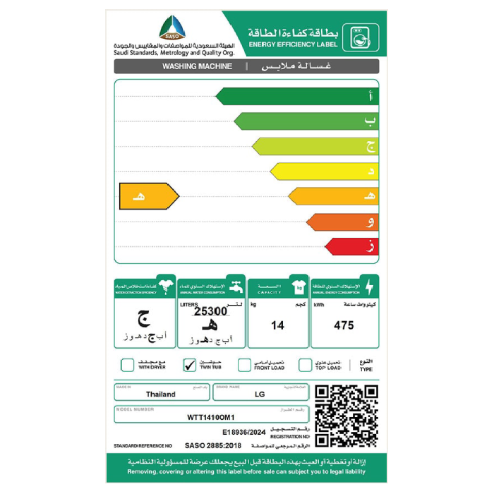 غسالة حوضين LG بسعة 14 كجم مع تجفيف بالهواء – الأداء المثالي للعائلة الكبيرة! | موديل WTT1410OM1 – أسود أنيق (صنع في تايلاند)