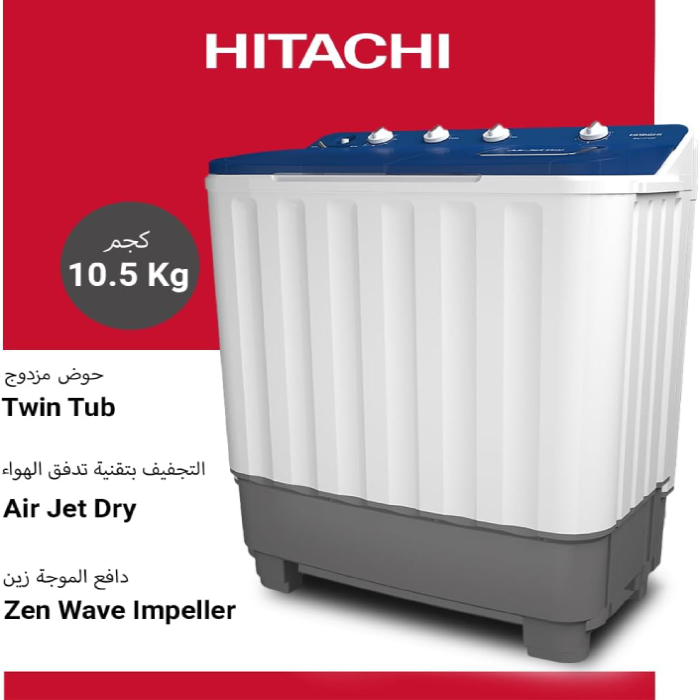 غسالة حوضين هيتاشى 10.5 كيلو ابيض غطاء ازرق |تايلندي| LTTH0JWTPFB(ME)