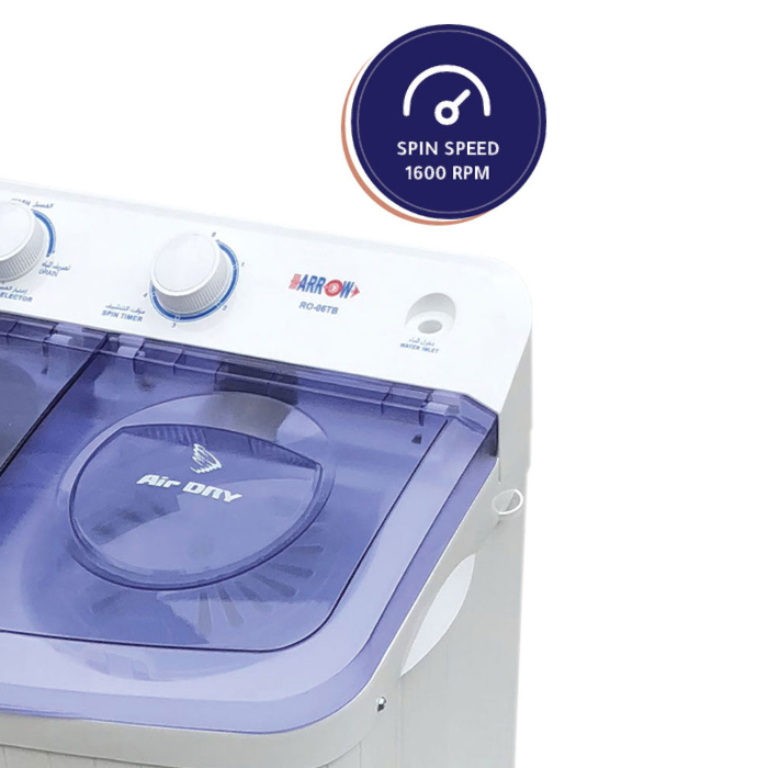 غسالة أرو حوضين 10 كجم – تجفيف 6 كجم – أبيض – RO-11TTB