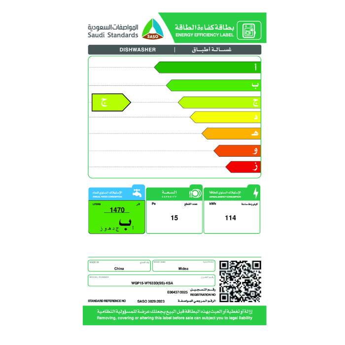 مميزات غسالة صحون ميديا 15 مكان 9 برامج Wifi ستيل WQP15-W7633D(SS)-KSA :