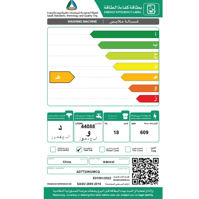 مميزات غسالة ملابس حوضين ادميرال 18 كيلو – ابيض ADTT20KUWCQ :