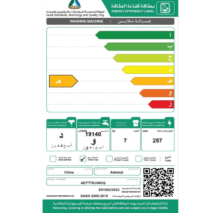 الوسوم: غسالة 7 كيلو, غسالة ادميرال, غسالة حوضين, غسالة ملابس