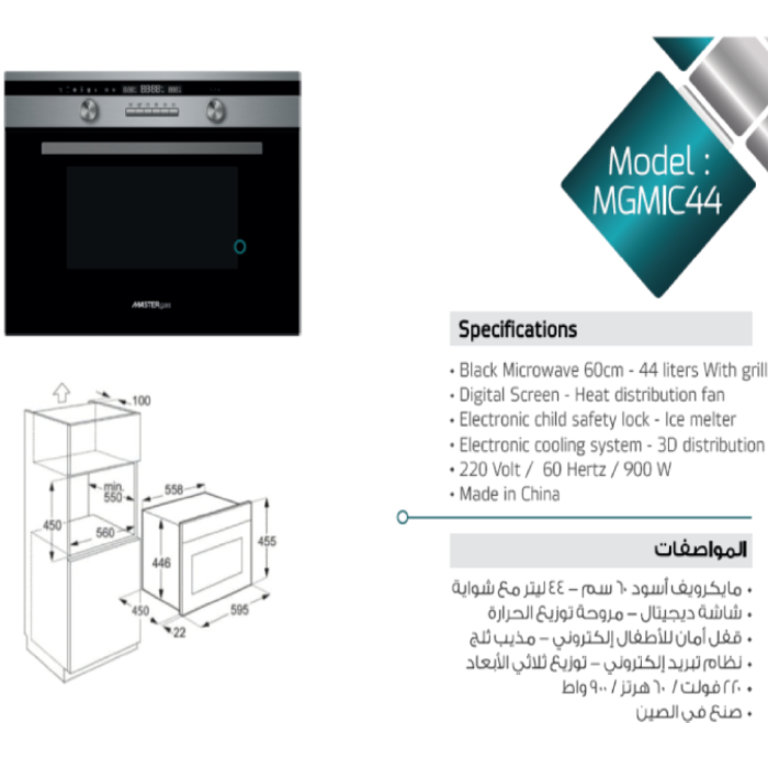 هل تبحث عن فرن ميكروويف بلت إن فاخر يجمع بين القوة، الذكاء، والأناقة؟ اكتشف الآن فرن الميكروويف ماستر جاز MGMIC44 – الحل الأمثل للمطابخ الحديثة التي تطلب الأداء العالي والتصميم الراقي.