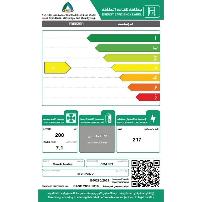 ✨ لماذا تختار فريزر كرافت CF285VINV؟