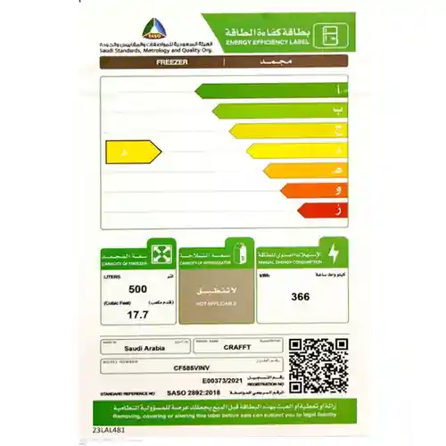 مميزات فريزر ارضي كرافت 18 قدم ابيض (انفرتر) وطني CF585VINV :