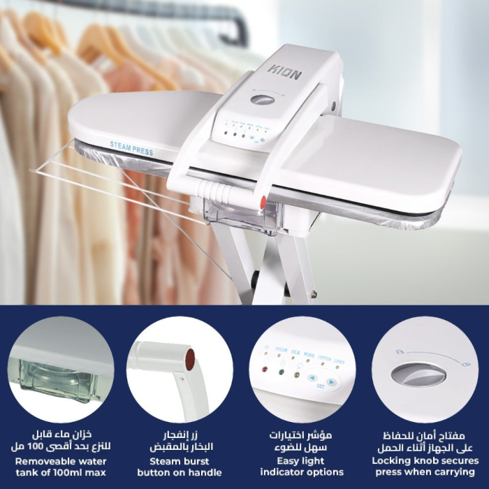 كاوية بخار كبس كيون 36 بوصة 1600 وات – أبيض KISP-36 | أداء احترافي – نتائج فورية – كيّ خالٍ من التجاعيد