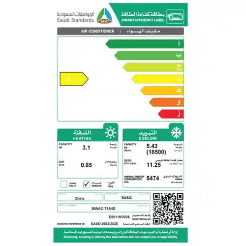 وصف مكيف شباك بيسك انفرتر 18500 وحدة حار – بارد BIWAC-T18HD :