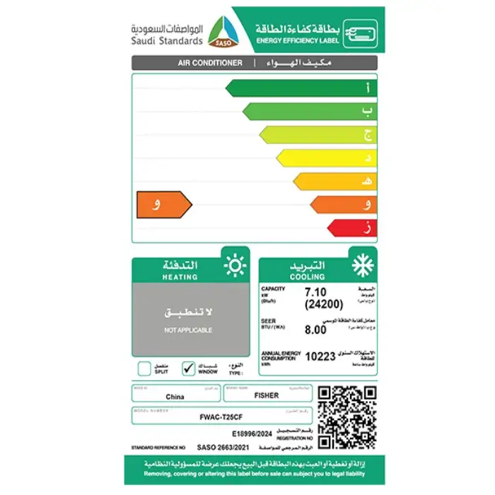 أهم مميزات مكيف فيشر شباك 24200 وحدة – بارد – FWAC-T25CF :