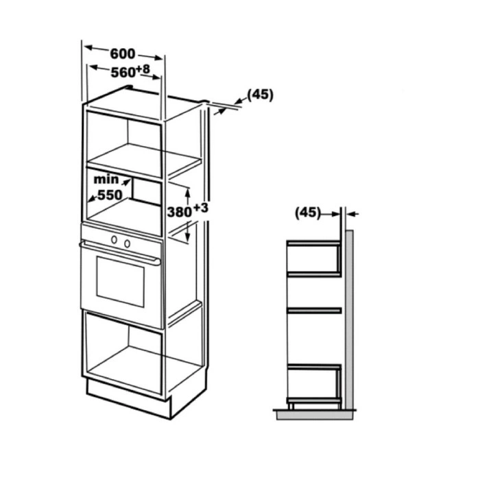 نعم، تصميم بلت إن بقياس قياسي 60 سم، يتناسب مع وحدات المطبخ الحديثة.