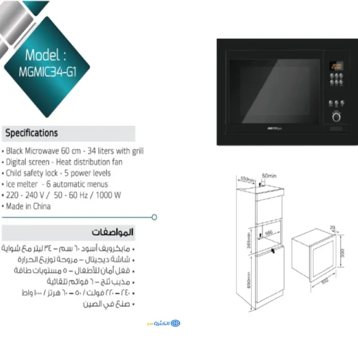 ابقَ خطوة أمام الطهي الحديث مع ميكرويف بلت إن ماستر جاز MGMIC34-G1، الجهاز الذكي الذي يجمع بين القوة، الدقة، والأناقة في تصميم واحد أسود أنيق يندمج بسلاسة مع أي مطبخ عصري. بسعة كبيرة تصل إلى 34 لترًا، يمنحك هذا الميكروويف المساحة المثالية لتحضير وجبات العائلة، تسخين الأطعمة، أو حتى طهي وصفات متقدمة بكل سهولة.
